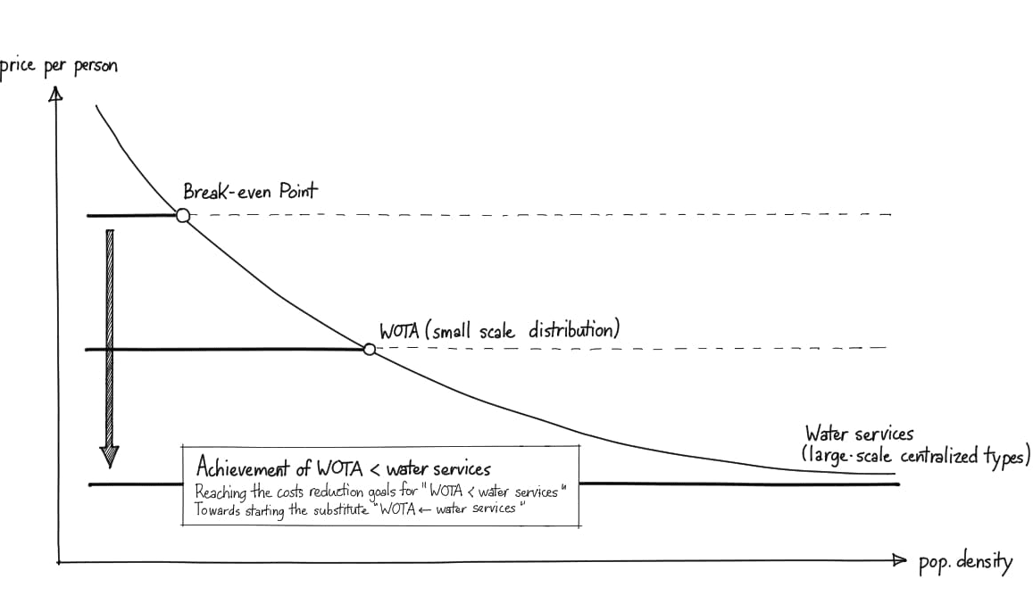WOTAの製品は、全世界へ普及するべき製品ですが、課題が一つあります。それは、なるべく早期に水道のコストを下回ることです。