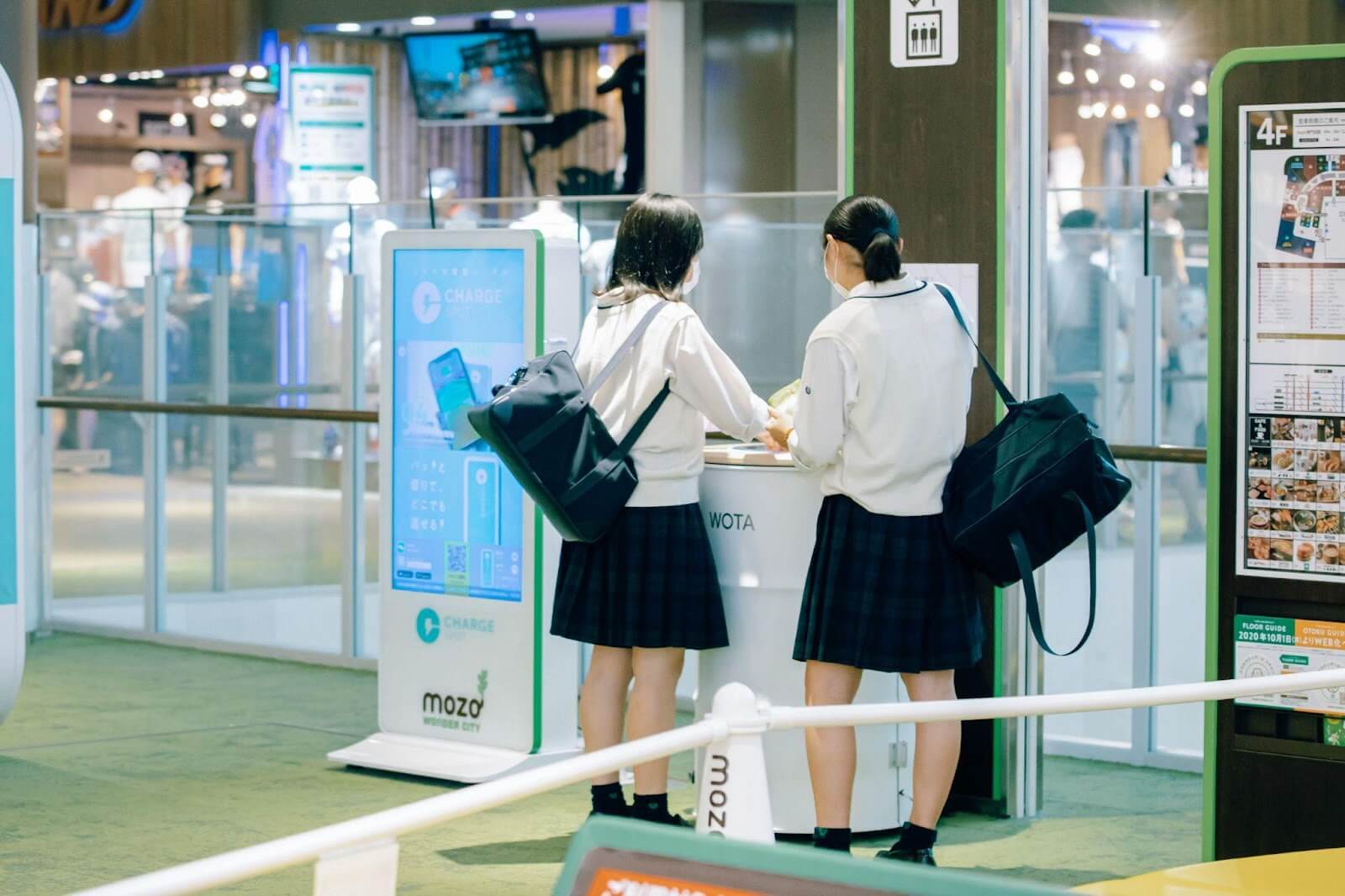 店舗に囲まれて多くの人が通る場所に設置しているので、「こどもぞ。」を利用する子どもに限らず、幅広い年齢層の方々が利用されています。WOSHはデザインも目を引くので、高校生や若い世代の方にも興味を持たれているようです。特にスマートフォンの除菌機能は、おもしろがって体験している若い方が多いですね。今後は、弊社の他の施設にも広げていきたいと考えています。