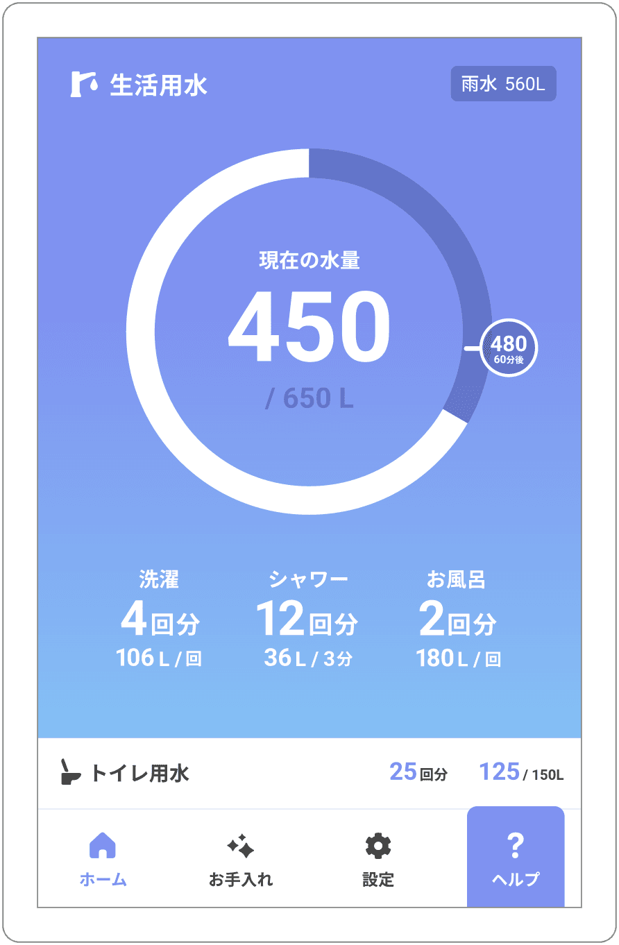 - 雨水タンクの残り水量も確認できます